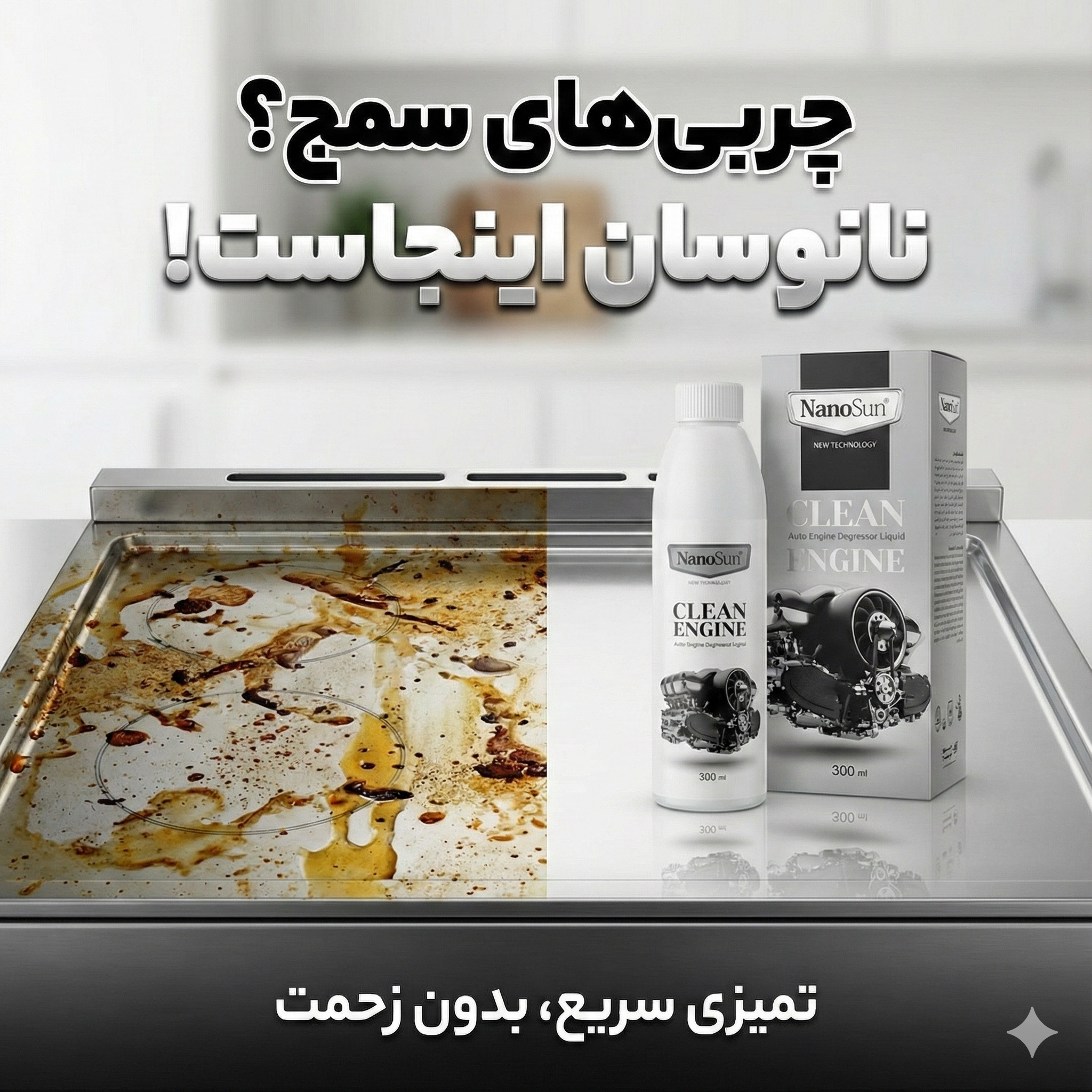 با پک سهتایی نانو همه چیز برق میفته: قابلمهها، گاز، شیرآلات و سینک، بدون چربی، جرم یا رسوب! بدون نیاز به سایش بدون بوی تند نتیجه فوری و خیرهکننده خونهت دوباره مثل روز اول میدرخشه و حس خوبی میاره!
